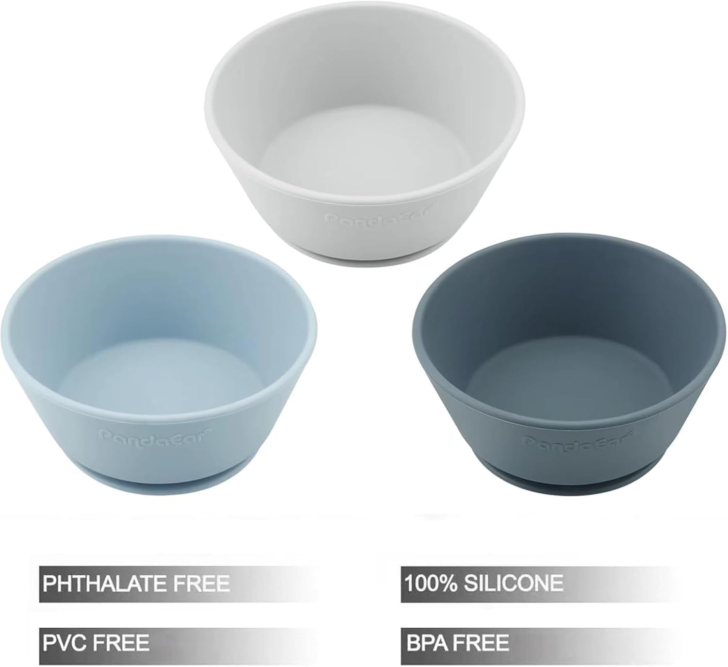 PandaEar Conjunto de 3 Tigelas para Bebê com Ventosa | Tigelas de Silicone para a Primeira Fase de Alimentação de Bebês e Crianças | Tigelas com Ventosa de Grau Alimentício para Crianças | Tigelas Macias,