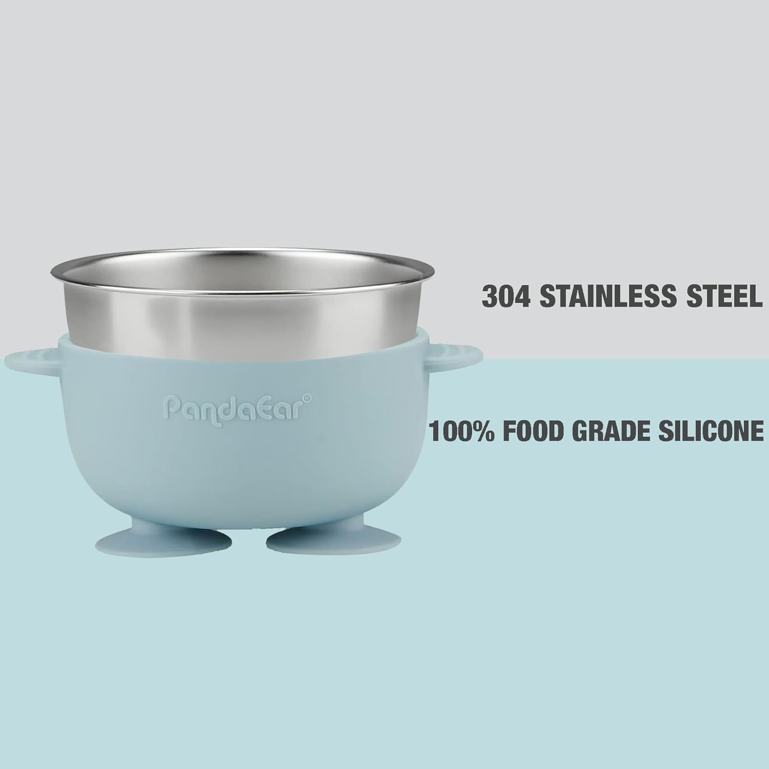 PandaEar Conjunto de alimentação infantil 6 em 1 em aço inoxidável – Conjunto para introdução alimentar com conjunto de jantar de silicone, conjunto de prato infantil, prato dividido com ventosa, tigela, copo de transição com canudo,