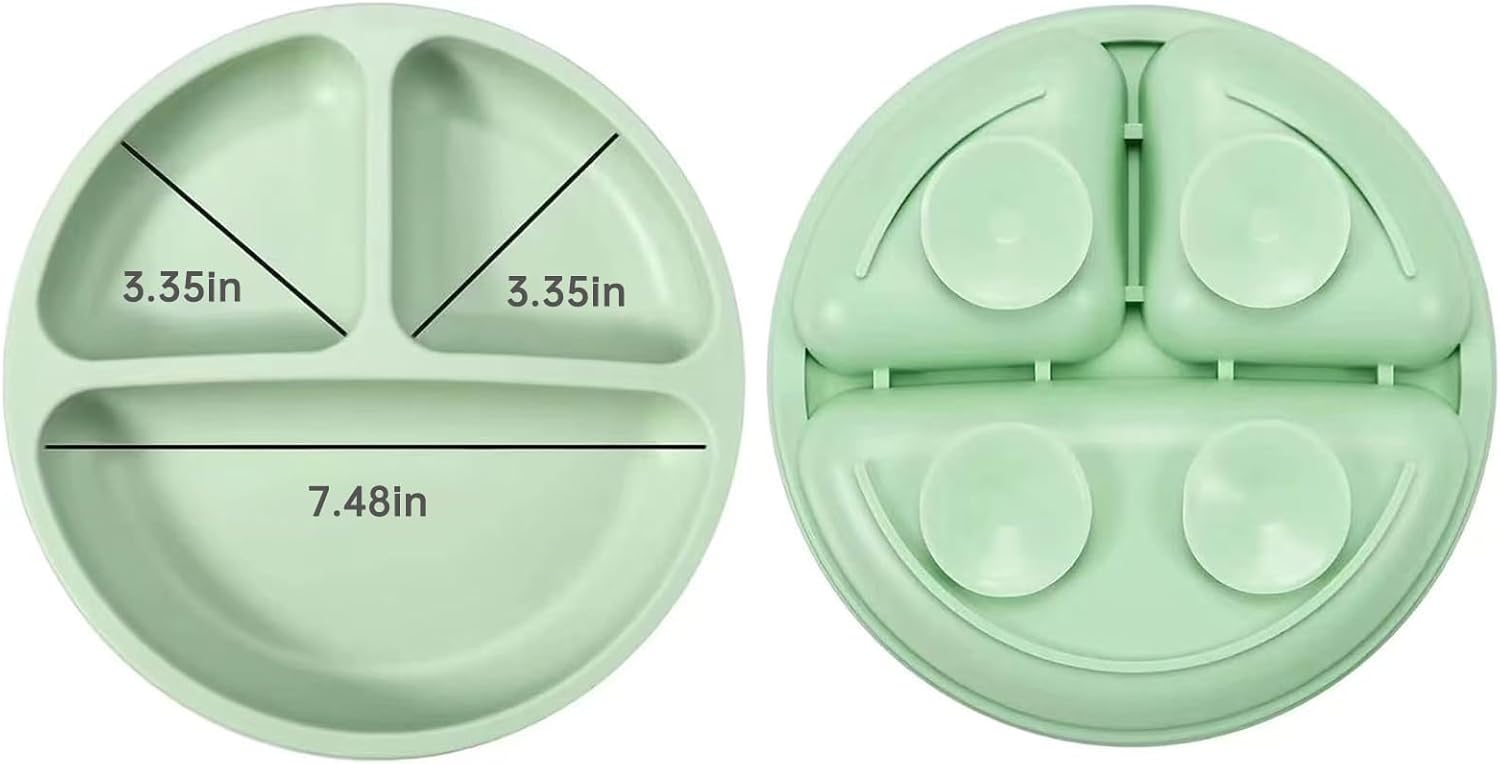 - [PRATO INFANTIL COM DIVISÕES E VENTOSA] - Dê ao seu pequeno mais independência nas refeições com seu próprio prato de silicone com 3 divisórias. O design antiderrapante garante que os pratos não caiam no chão, reduzindo a bagunça.