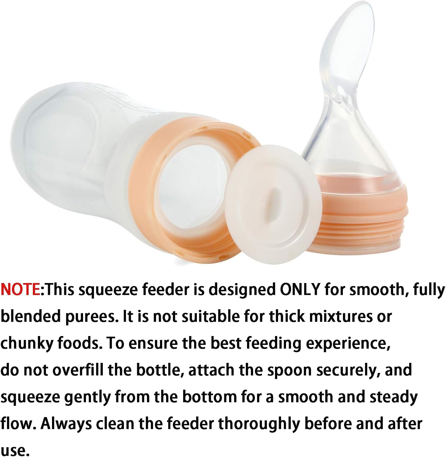 - [GARRAFA COM TAMPA PROTETORA]: Nossos alimentadores de alimentos para bebês vêm com uma tampa protetora. Esta tampa não só mantém a ponta de silicone limpa e higiênica, como também evita que você suje as mãos com a comida do bebê enquanto enche o reservatório. Essas mamadeiras ficam em pé sozinhas, liberando suas mãos para imprevistos.