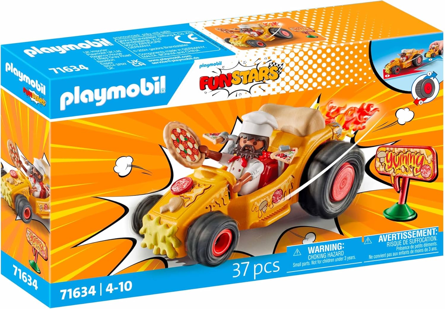 - Ótimos extras: O kart tem espaço para uma figura da PLAYMOBIL e vem com acessórios legais como uma pizza e um chapéu de chef. a carroceria original e o impulso ardente garantem muita ação e diversão para os pequenos pilotos