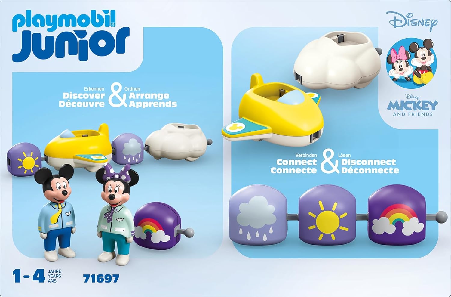 Playmobil 71697 JUNIOR & Disney: Mickey Mouse's & Minnie Mouse's Cloud Ride, with airplane and cloud vehicle, sustainable toy made from plant-based plastics