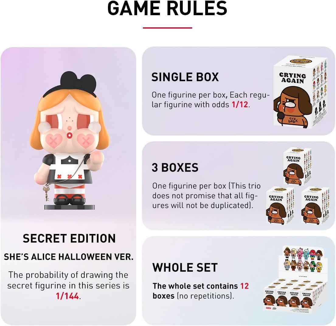 POP MART CRYBABY Crying Again Series Conjunto completo de bonecos de ação de 2,5 polegadas, brinquedo artístico chique, personagem articulado, design premium, presentes para mulheres, colecionáveis favoritos dos fãs