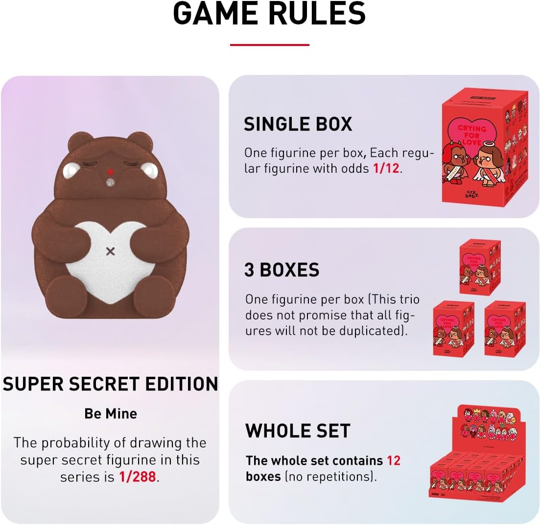 POP MART CRYBABY Crying For Love Series Conjunto completo de design premium, presentes para mulheres, boneco de ação colecionável favorito dos fãs