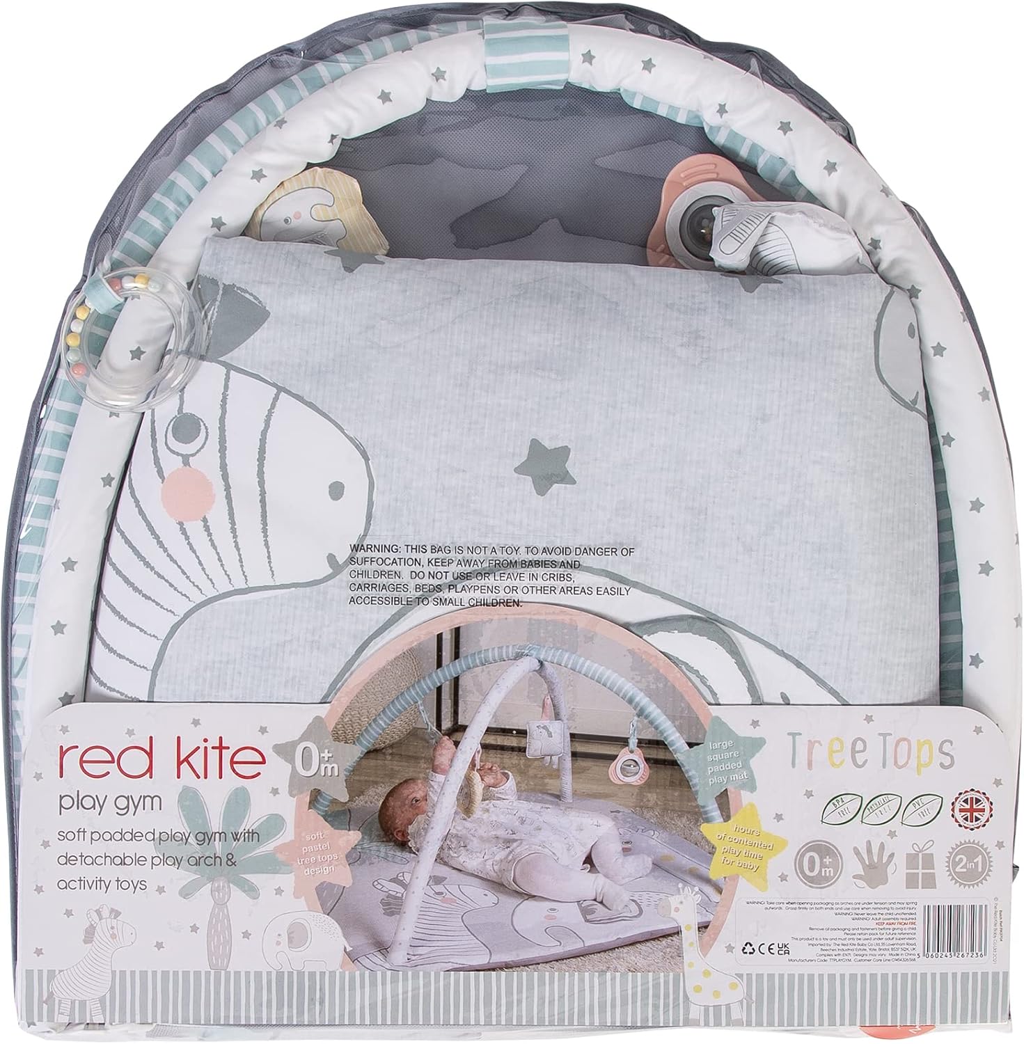 Red Kite Play Gym Tree Tops - Ginásio de jogos acolchoado macio com arco de jogo removível e brinquedos de atividade cinza