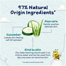 A fórmula suave contém uma mistura de agentes de limpeza de origem natural e possui um aroma reconfortante de bebê. Aplique na pele ou use um pano para limpar onde for necessário e enxágue com água morna.
