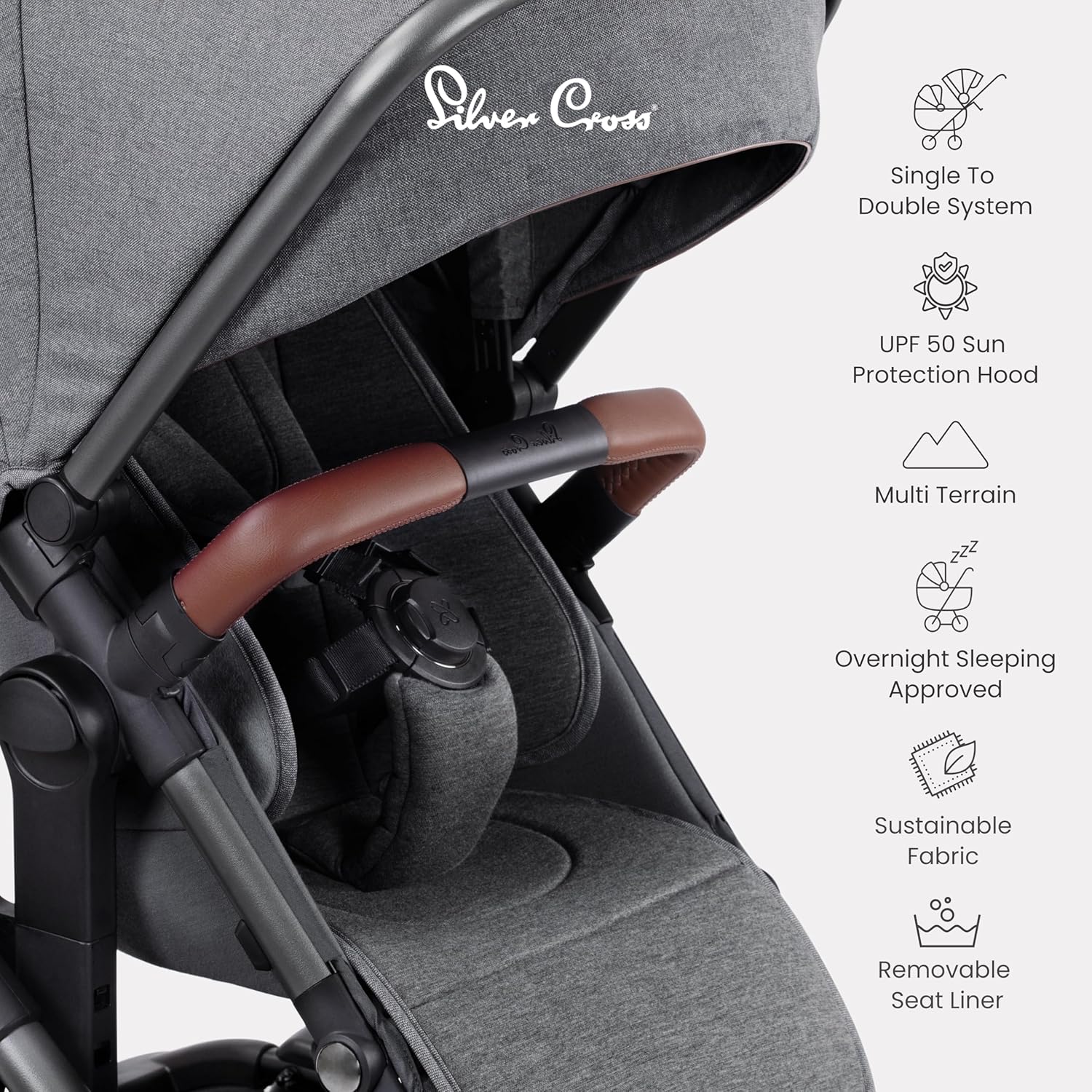 Silver Cross - Carrinho Wave Simples a Duplo - Carrinho de bebê 2 em 1 - Buggy duplo estreito - Compatível com assento de carro - Recém-nascido a 4 anos (22kg) - Lunar