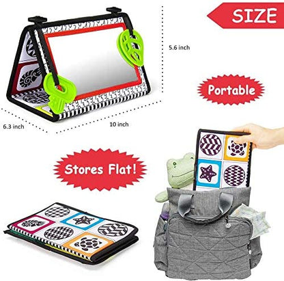 - 𝙎𝙩𝙖𝙣𝙙 𝘿𝙚𝙨𝙞𝙜𝙣 --- El espejo del tiempo del bebé con soporte plegable, se puede dejar solo en la mesa o en el suelo con velcro y hebilla. Se fija a la cuna o se usa en el piso. Se pliega cómodamente para un fácil almacenamiento y ahorro de espacio. Las correas de fijación se pueden colgar del gimnasio de juegos, lo que facilita la colocación del espejo para una visualización óptima sin importar dónde esté colocado o colgado. Gran adición a toda la experiencia del gimnasio de actividades para bebés.