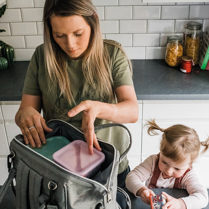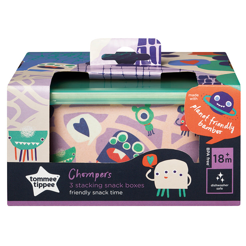 Si a tu pequeño monstruo le encanta masticar, estas ingeniosas cajas de refrigerios apilables son perfectas para guardar delicias en casa o durante los días fuera.