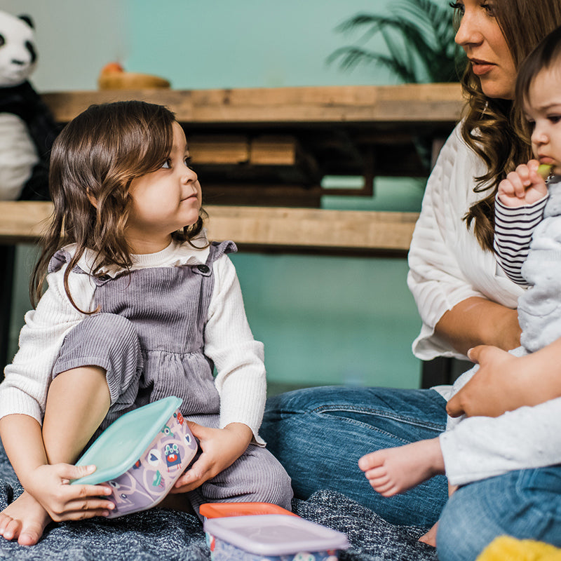 Cuando termina la hora de la merienda, las tres cajas se apilan una dentro de otra para ahorrar valioso espacio en el armario.