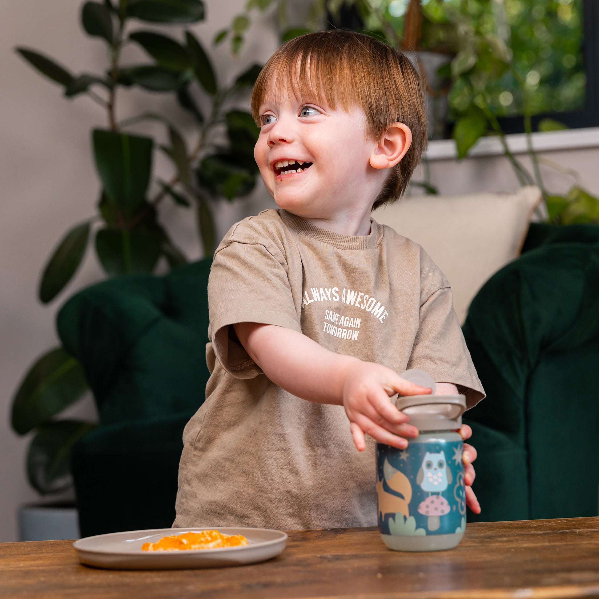 Com uma generosa capacidade de 350 ml e uma prática alça para facilitar o transporte, o copo com canudo é perfeito para os pequenos mais ativos.