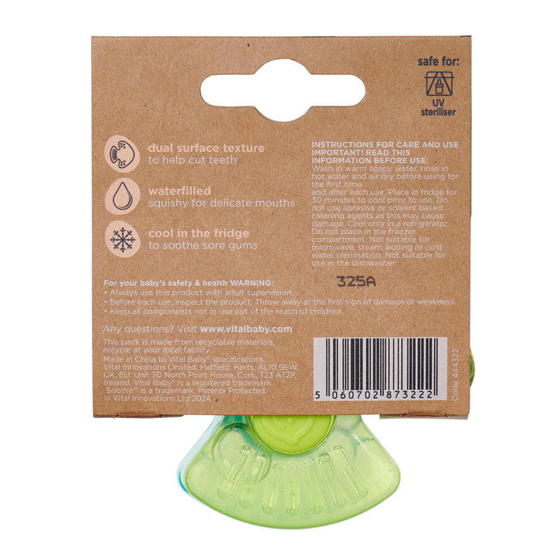 Especialmente concebidos para acalmar e refrescar as gengivas sensíveis do bebé, estes mordedores têm o tamanho e a forma ideais para a segunda fase da dentição.