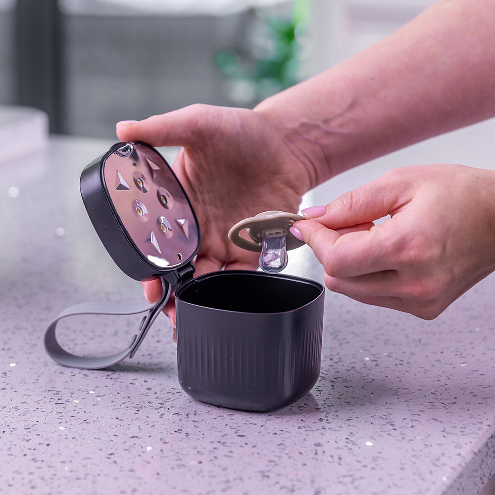 Sem necessidade de água, produtos químicos ou calor, ele é seguro para esterilizar praticamente qualquer coisa que caiba dentro — de chupetas e mordedores a joias, aparelhos ortodônticos e acessórios cosméticos. É recarregável e super portátil, oferecendo 60 ciclos de esterilização — perfeito para quando você estiver fora de casa.