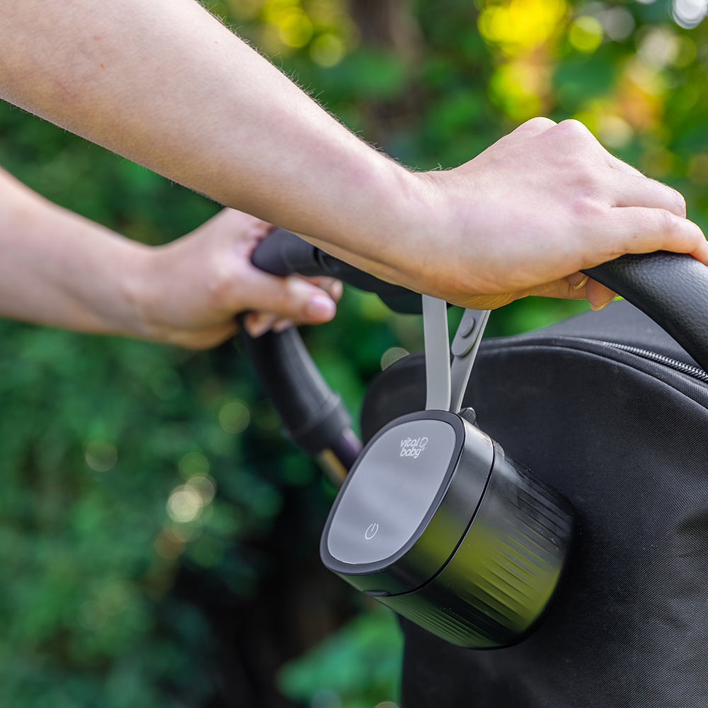 - Alça de silicone segura para prender em carrinhos de bebê e bolsas de fraldas.