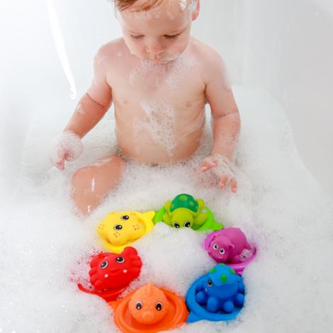 Cada boquilla tiene el tamaño perfecto para que las manos pequeñas puedan apretar y salpicar para crear burbujas bajo el agua. ¡Deja volar tu imaginación y diviértete con tus amigos animales acuáticos a la hora del baño!