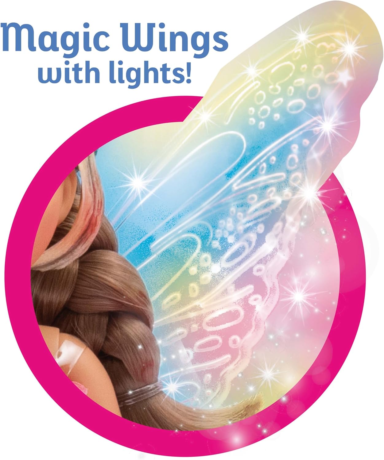 - Asas Interativas com Luzes – As asas da Flora brilham ao toque de um botão, criando um efeito encantador que traz ainda mais magia às suas aventuras de fada.