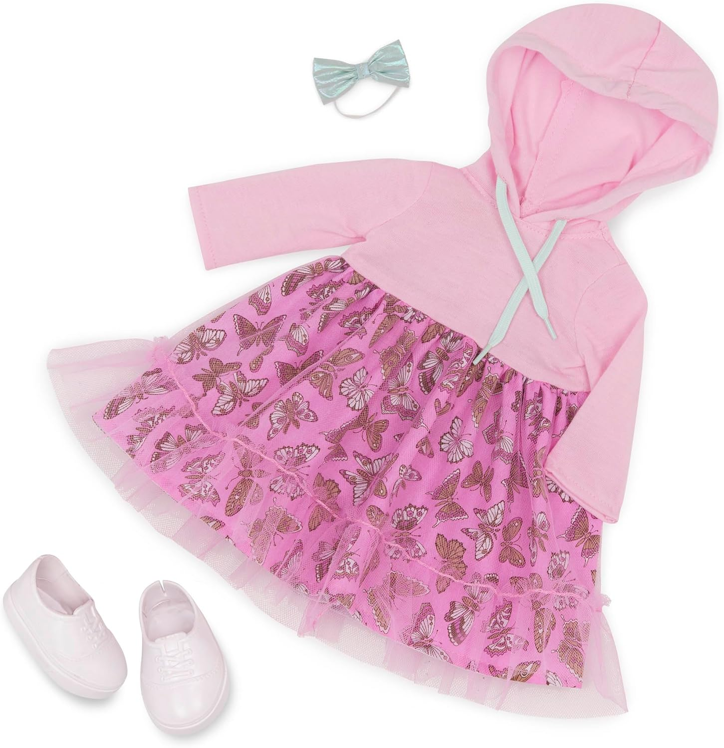 - Características detalhadas: Apresenta roupas elegantes para Hattie e a sua cadela de peluche Bella. O seu pelo escovável oferece infinitas possibilidades de estilo.