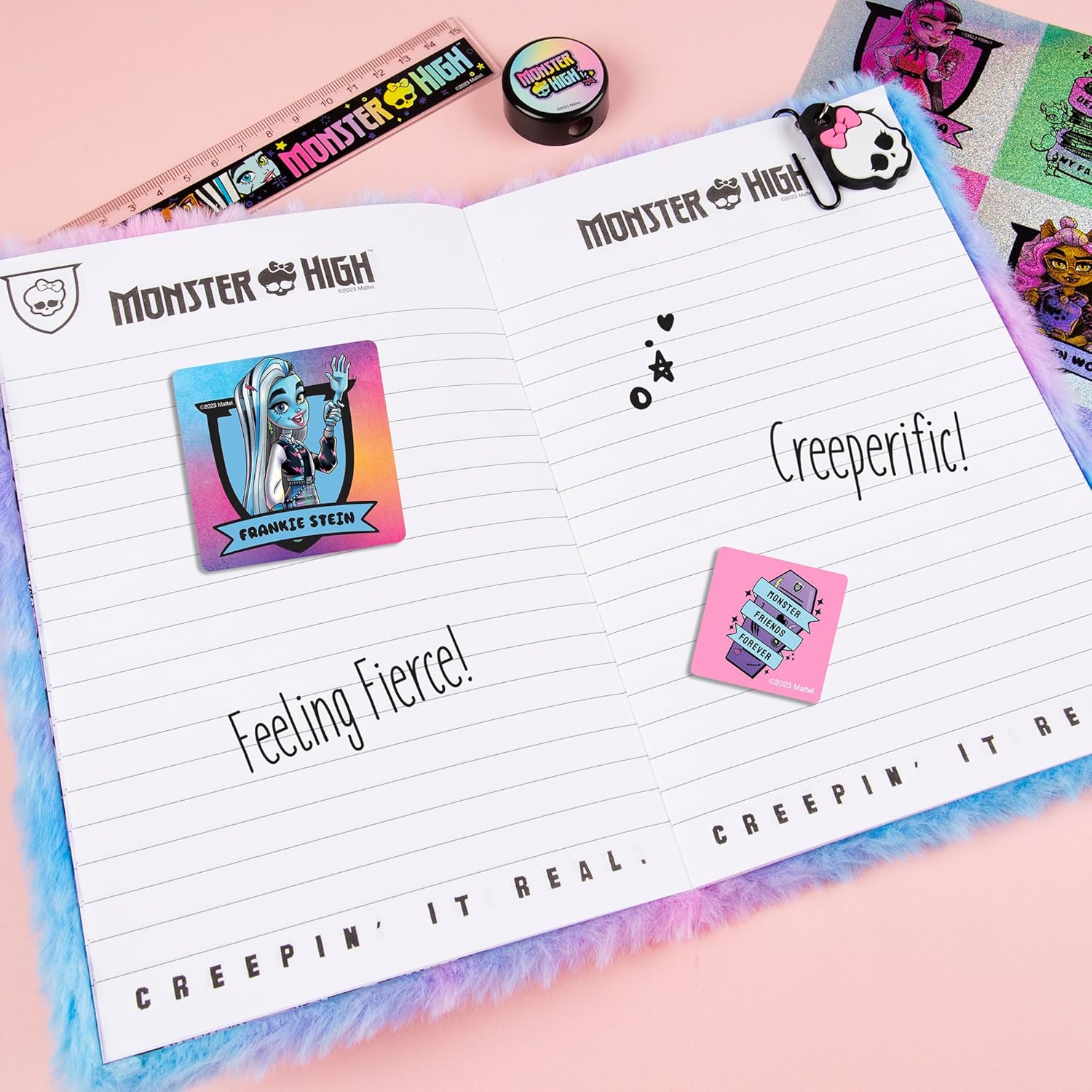 - Diário Monster High - Inclui um diário fofo com as bonecas Monster High na frente, uma caneta com cobertura de caveira e mais artigos de papelaria Monster High. O conjunto perfeito de papelaria e escrita para crianças que amam tudo Monster High