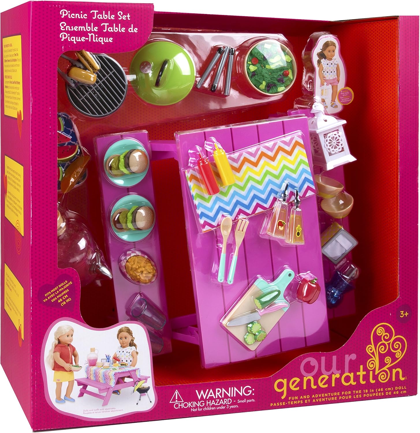 Acessórios para bonecas Our Generation - Conjunto de mesa de piquenique - para bonecas de 46 cm - para idades de 3, 4 anos ou mais
