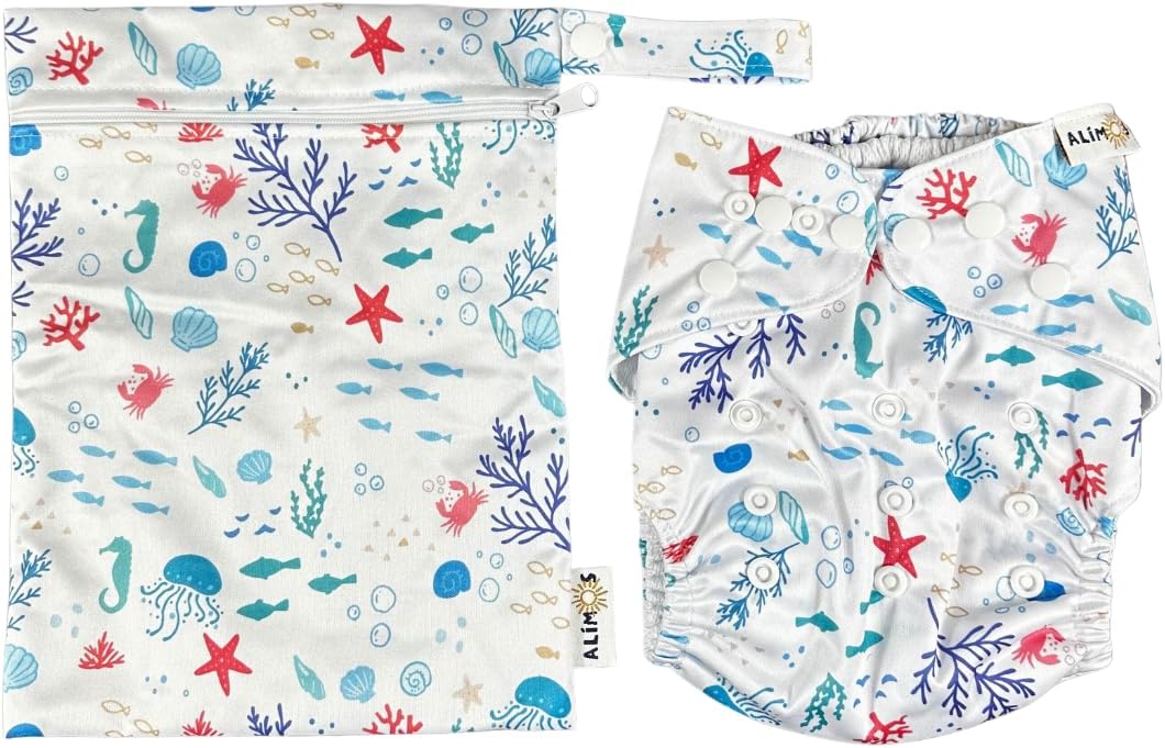 Alimos Fralda de natação bolsa impermeável lavável e reutilizável para bebê feliz