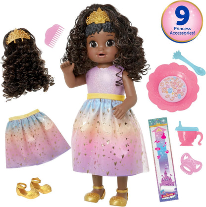 Baby Alive Princesa Ellie cresce! Boneca de cabelo preto, boneca interativa com acessórios, bonecas falantes, brinquedos para meninas e meninos de 3 anos e mais, 18 polegadas