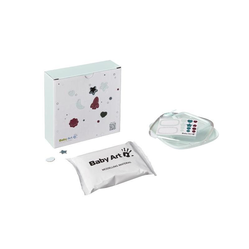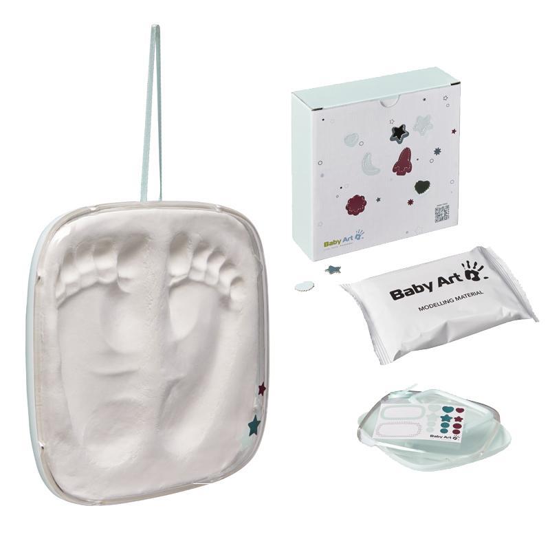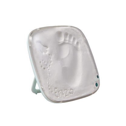 A caixa Baby Art Hello Baby, da Cherished Impressions, é adequada desde o nascimento até os 3 anos de idade e é muito rápida e fácil de usar. Em questão de segundos, você pode criar uma memória que durará para sempre. Com o material de barro fácil de usar, você pode fazer uma impressão da mão ou do pé do seu bebê e também esculpir o nome do seu bebê acima ou abaixo da impressão. Várias tentativas podem ser feitas antes de definir.