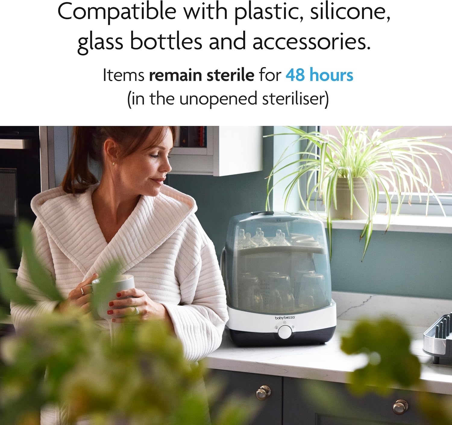 Baby Brezza Esterilizador e Secador SuperFast Baby Brezza – Esteriliza mamadeiras em 10 minutos, o mais rápido do mercado – Esteriliza e seca mamadeiras, peças de bombas de leite, chupetas e acessórios em uma única etapa – Grande capacidade universal