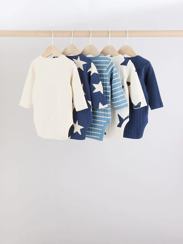 |BabyBoy| Body Azul Manga Longa Para Bebê 100% Algodão Pacote Com 5