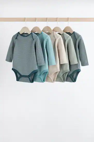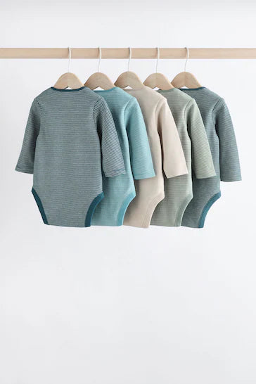 |BabyBoy| Body Para Bebê Manga Comprida Pacote Com 5 - Listra Azul