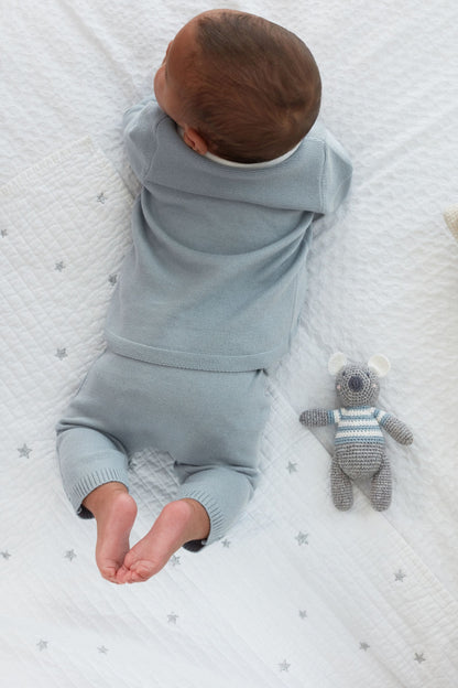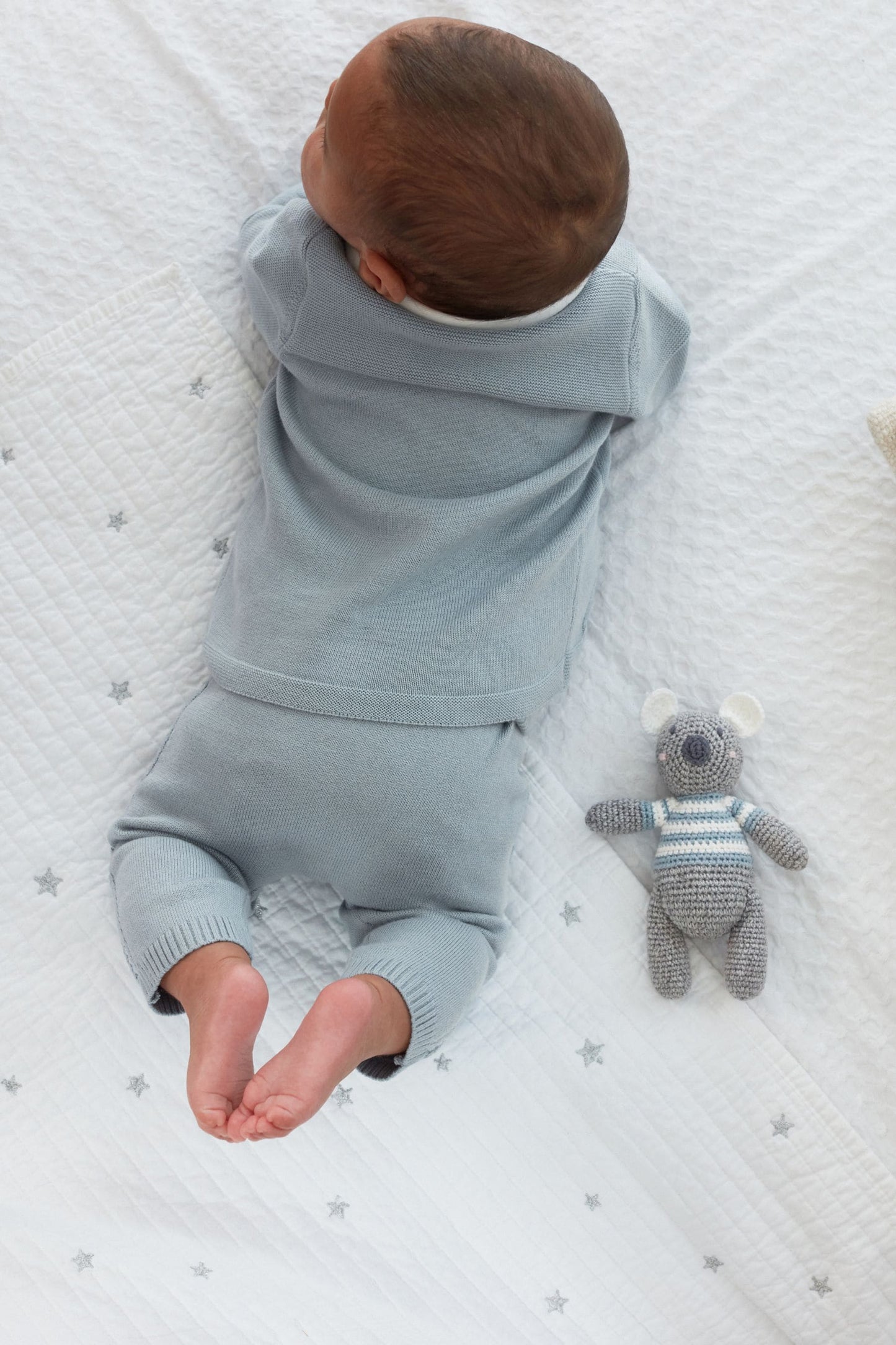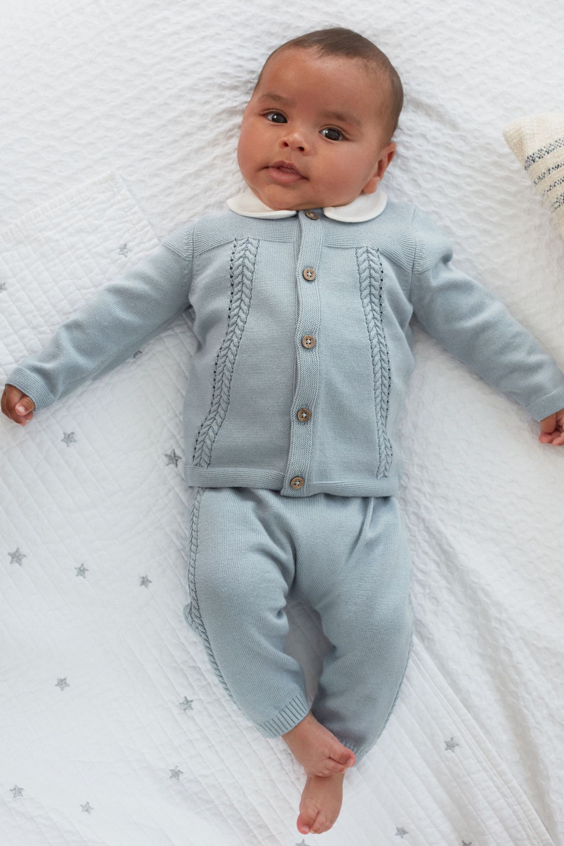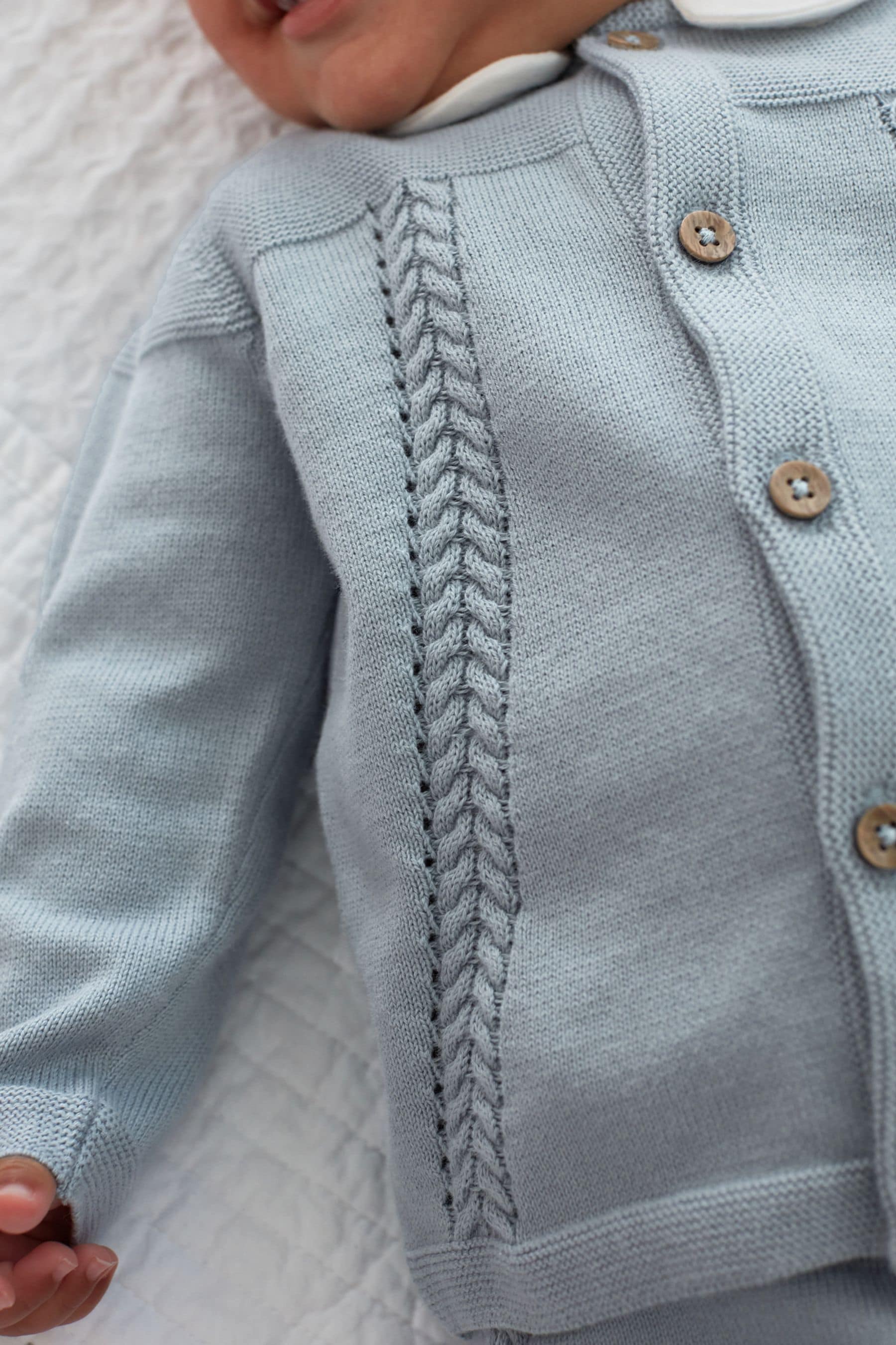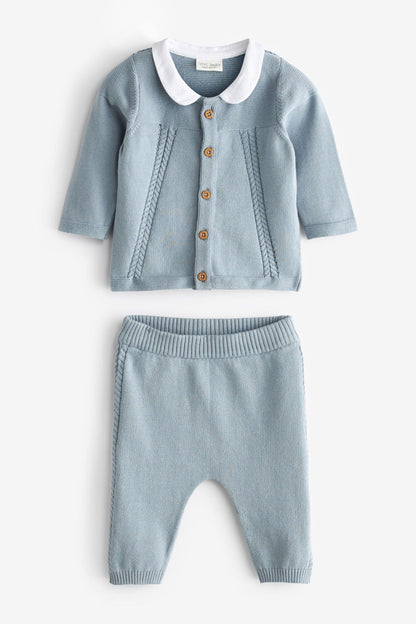 |BabyBoy| Conjunto Cardigan com Gola e Legging de Malha Fina / Azul Claro - (0meses-2anos)