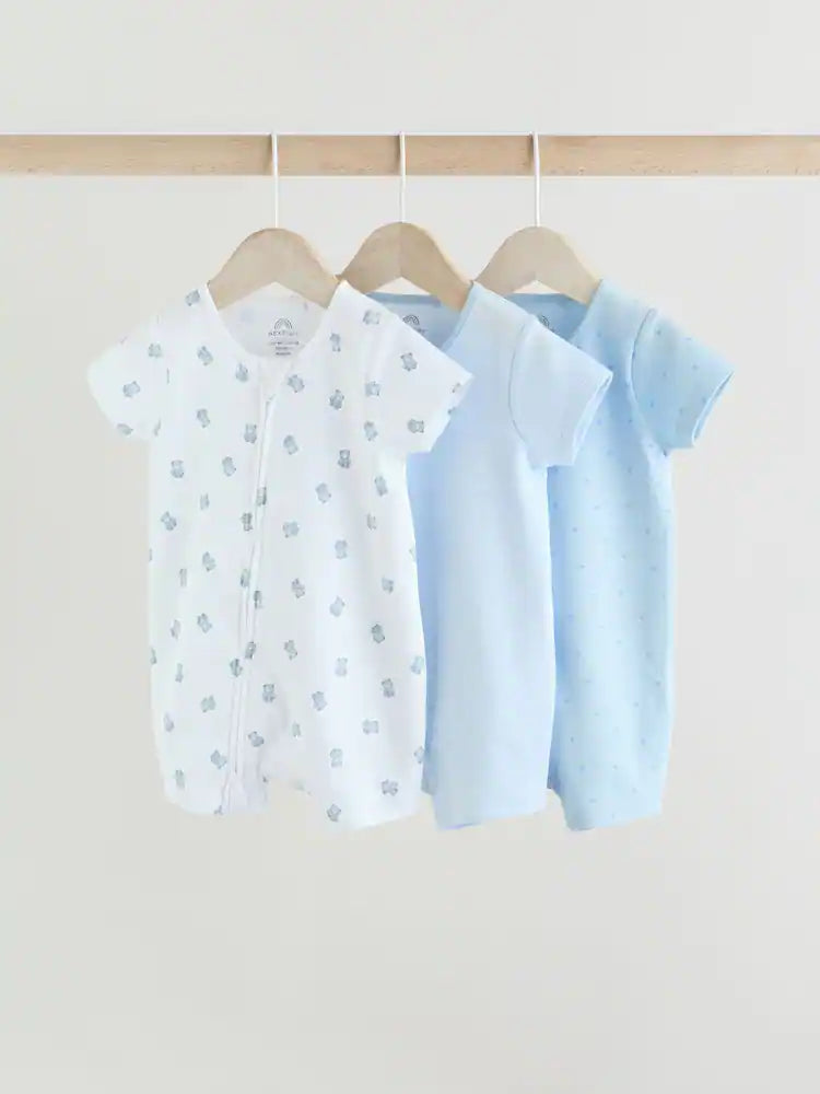 |BabyBoy| Conjunto De 3 Macacões Azuis Com Zíper Duplo Para Bebês (0 meses a 3 anos)