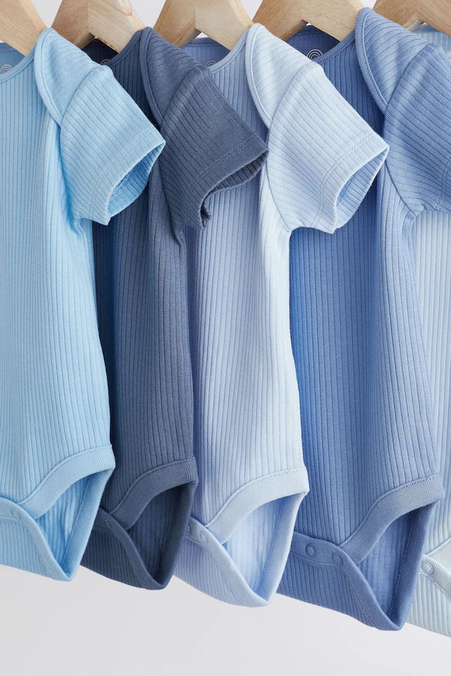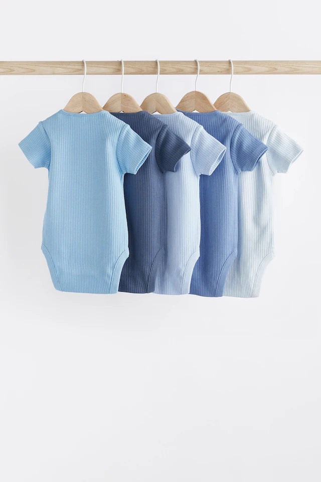 |BabyBoy| Conjunto De 5 Macacões Para Bebê Com Costela Lisa Azul