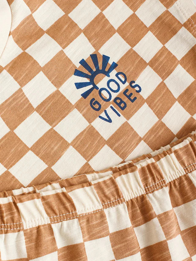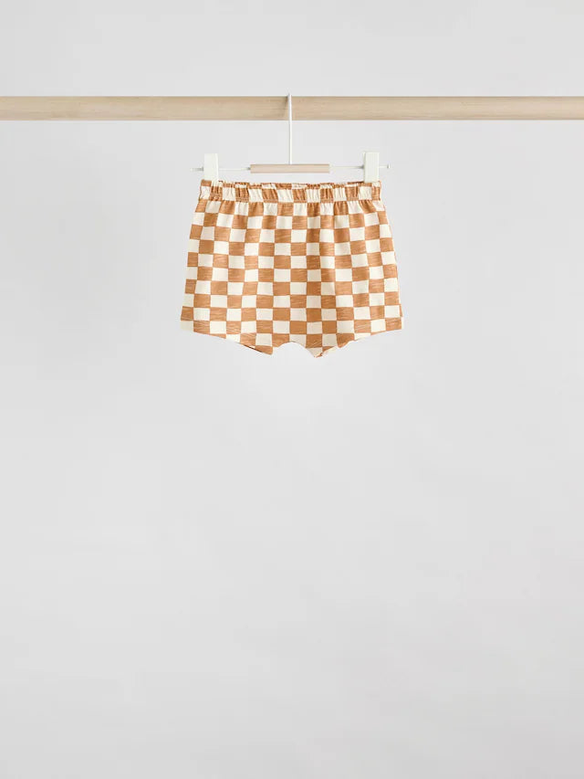|BabyBoy| Conjunto De 6 Peças De Blusas e Shorts Xadrez Azul-Marinho/Ferrugem Para Bebê