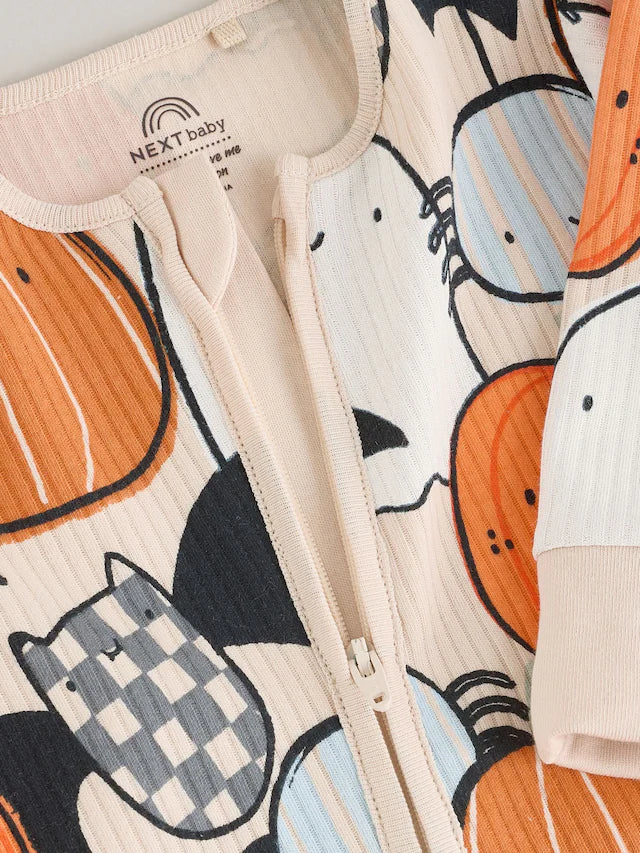 |BabyBoy| Macacão De Dormir Laranja Para Bebê Halloween Com Zíper Bidirecional (0 meses a 3 anos)