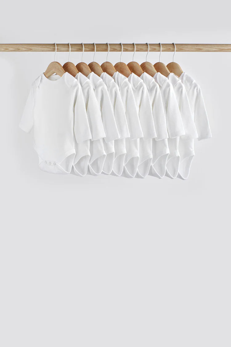 |BabyBoy| Macacões Brancos De Manga Comprida Para Bebê Essencial Com 10 Unidades