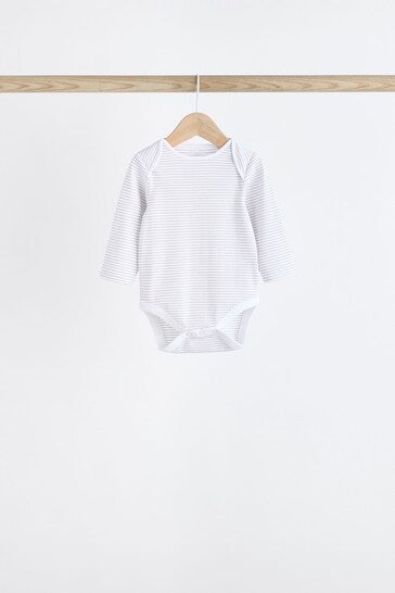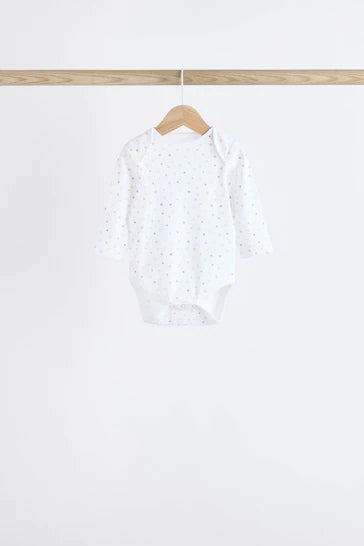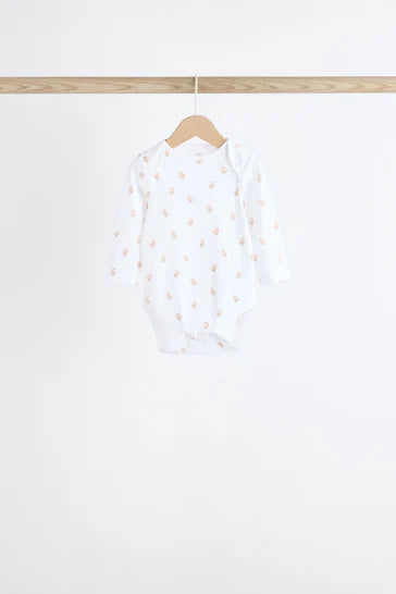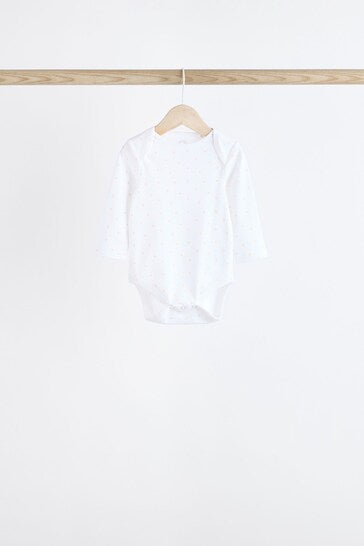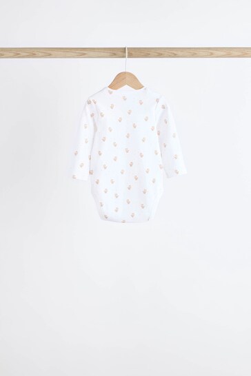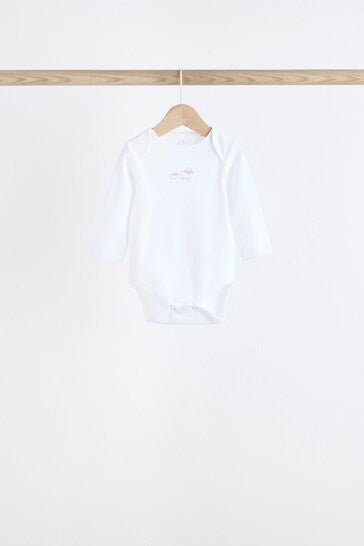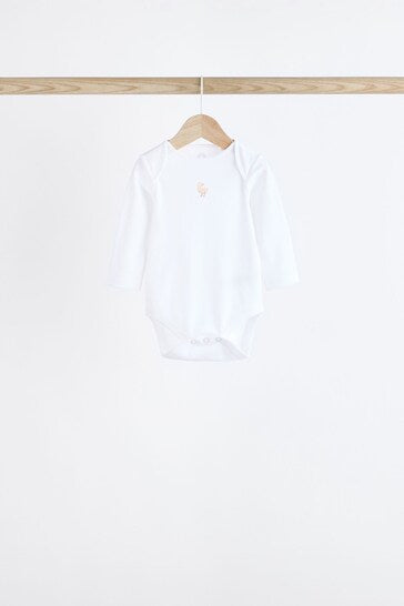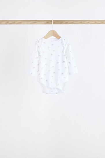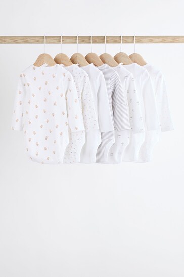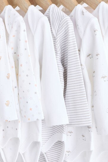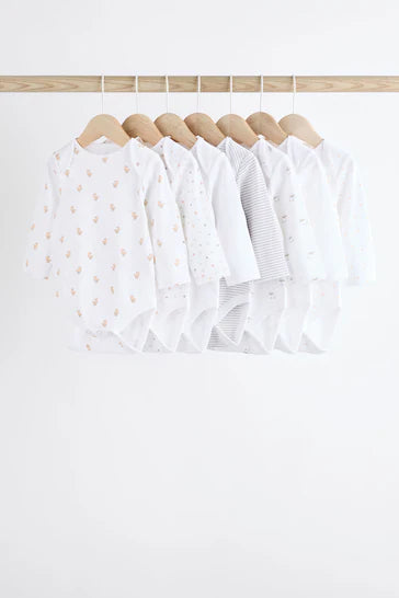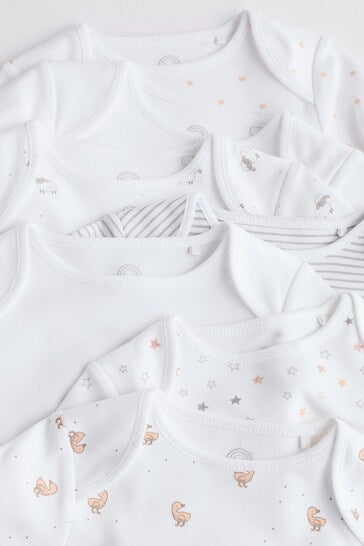 |BabyBoy| Macacões Brancos Delicados Com Estampa Animal De Manga Comprida Para Bebês, Pacote Com 7