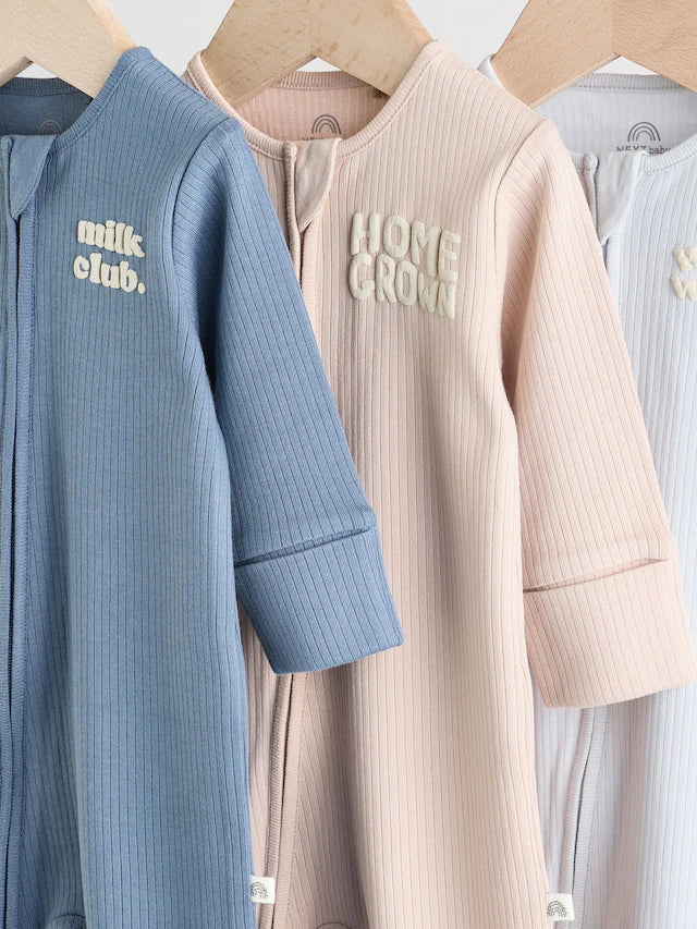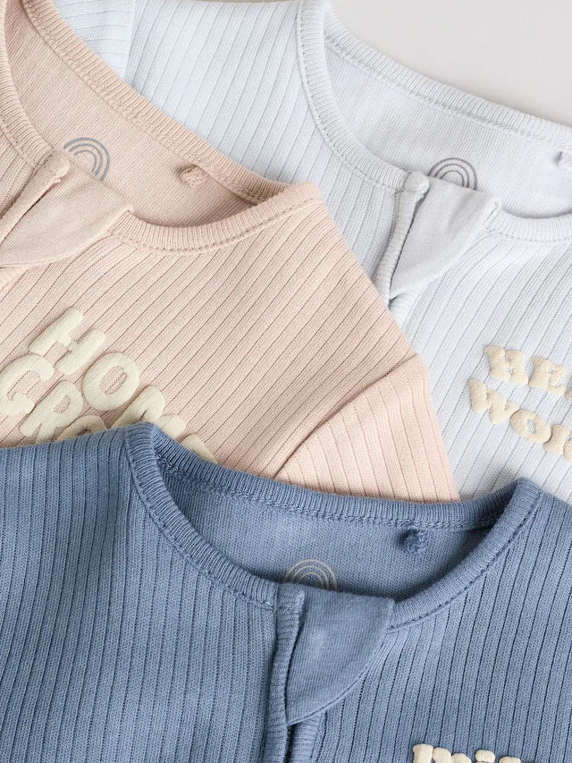 |BabyBoy| Pacote Com 3 Macacões De Dormir Azuis Slogan Para Bebês 100% Algodão (0 meses a 2 anos)