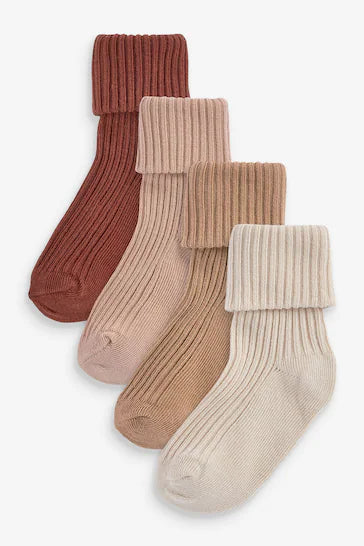 |BabyBoy| Pacote Com 4 Meias Roll Top Para Bebês - Rust Brown/Neutral (0 meses a 2 anos)