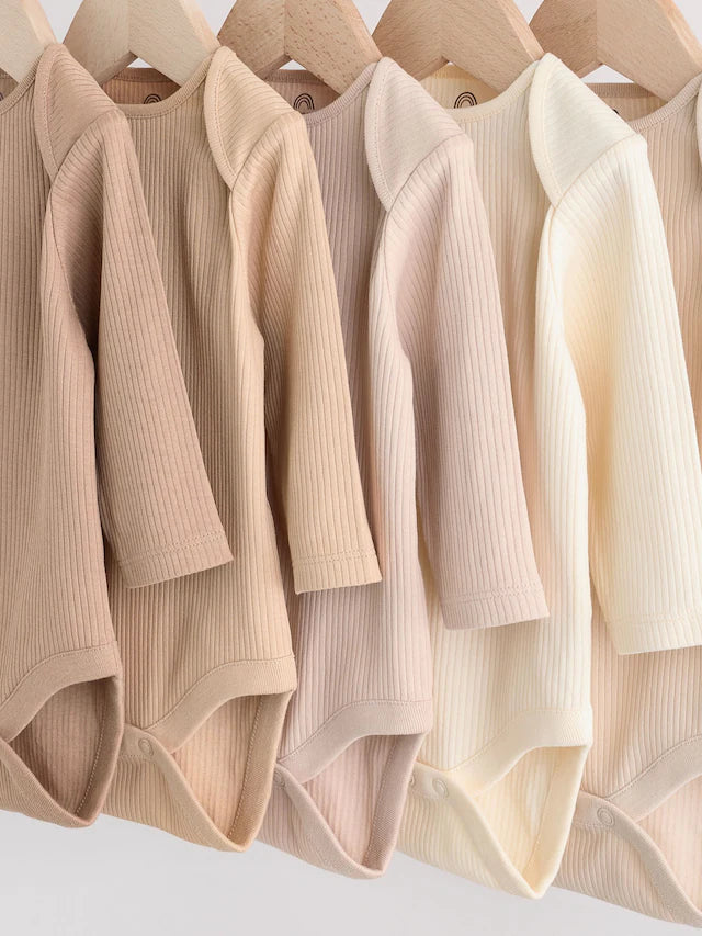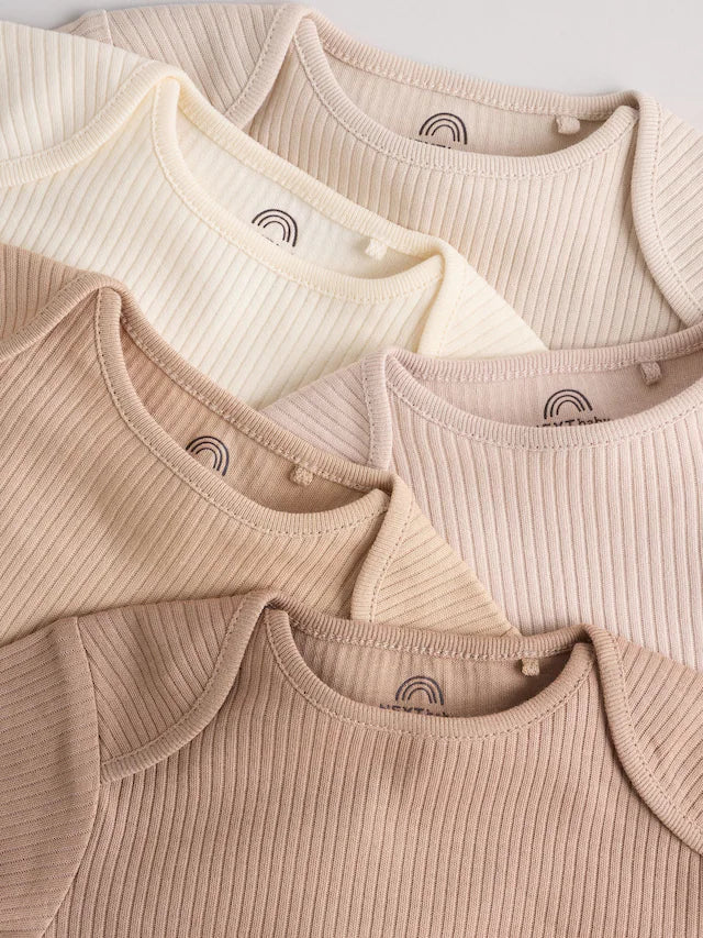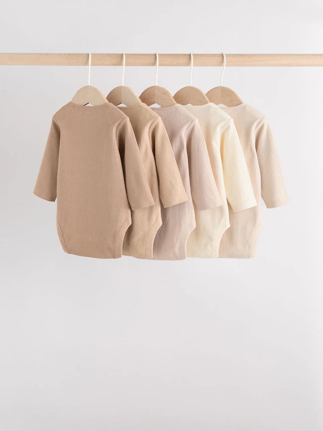 |BabyBoy| Pacote Com 5 Macacões De Manga Comprida Creme Para Bebê