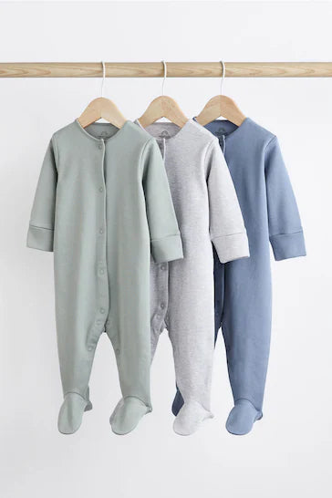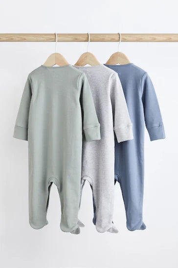 |BabyBoy| Pacote De 3 Macacões De Algodão Para Bebê - Cinza / Azul (0-2 anos)