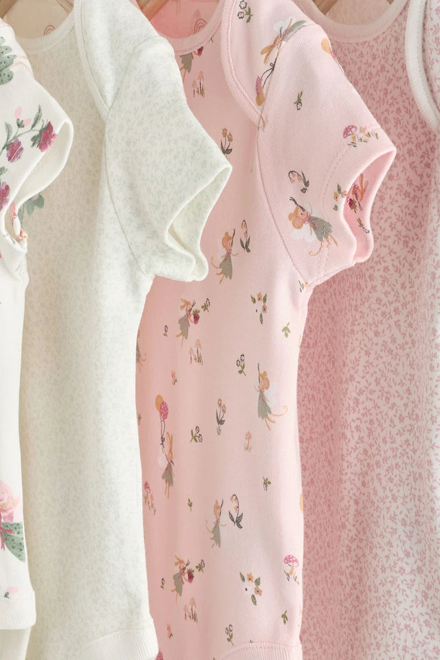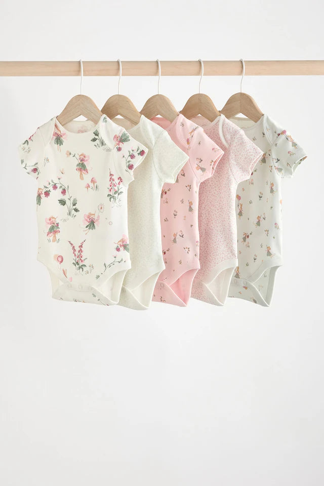 |BabyGirl| Body De Algodão De Manga Curta ara bebê rosa e branco Fairy, Pacote Com 5