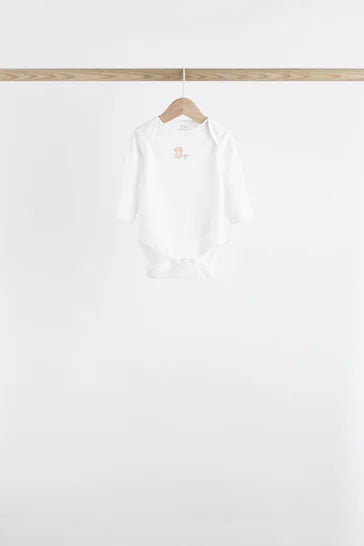 |BabyGirl| Body De Manga Comprida Para Bebê Pink Bunny, Pacote Com 7