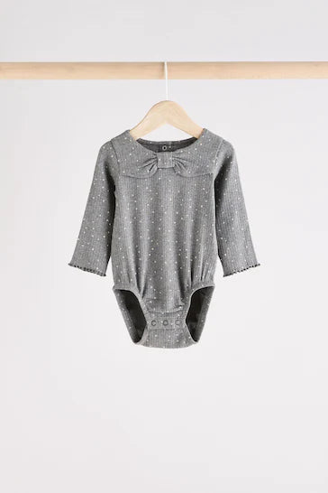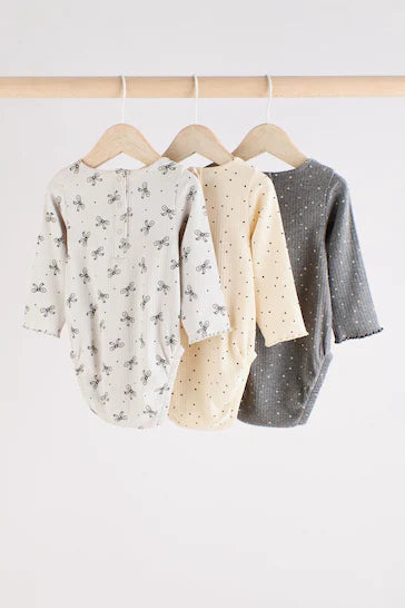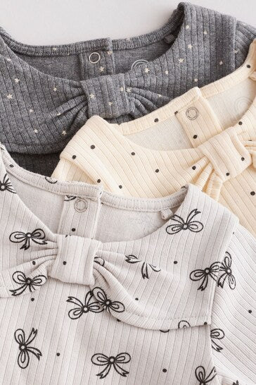|BabyGirl| Body Manga Longa Para Bebê Pacote Com 3 - Decote Laço Cinza
