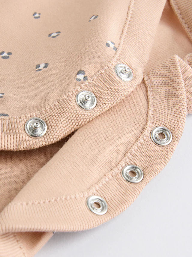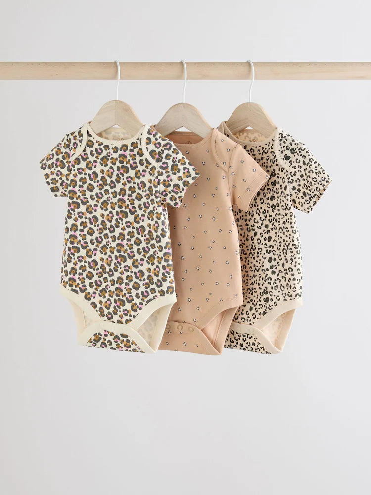 |BabyGirl| Body Para Bebê Marrom Animal Manga Curta 100% Algodão, Pacote Com 3