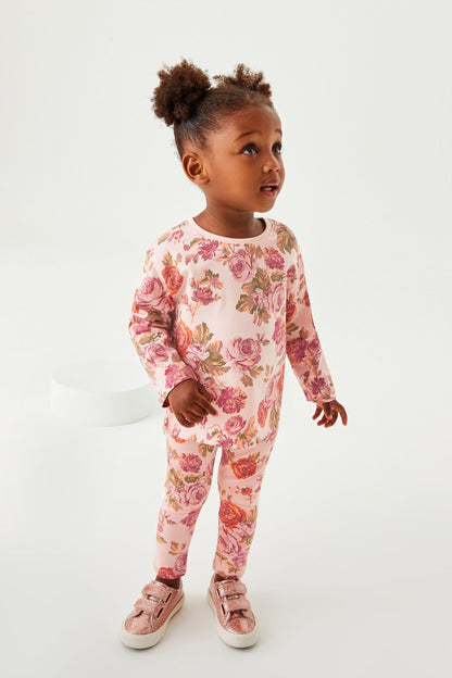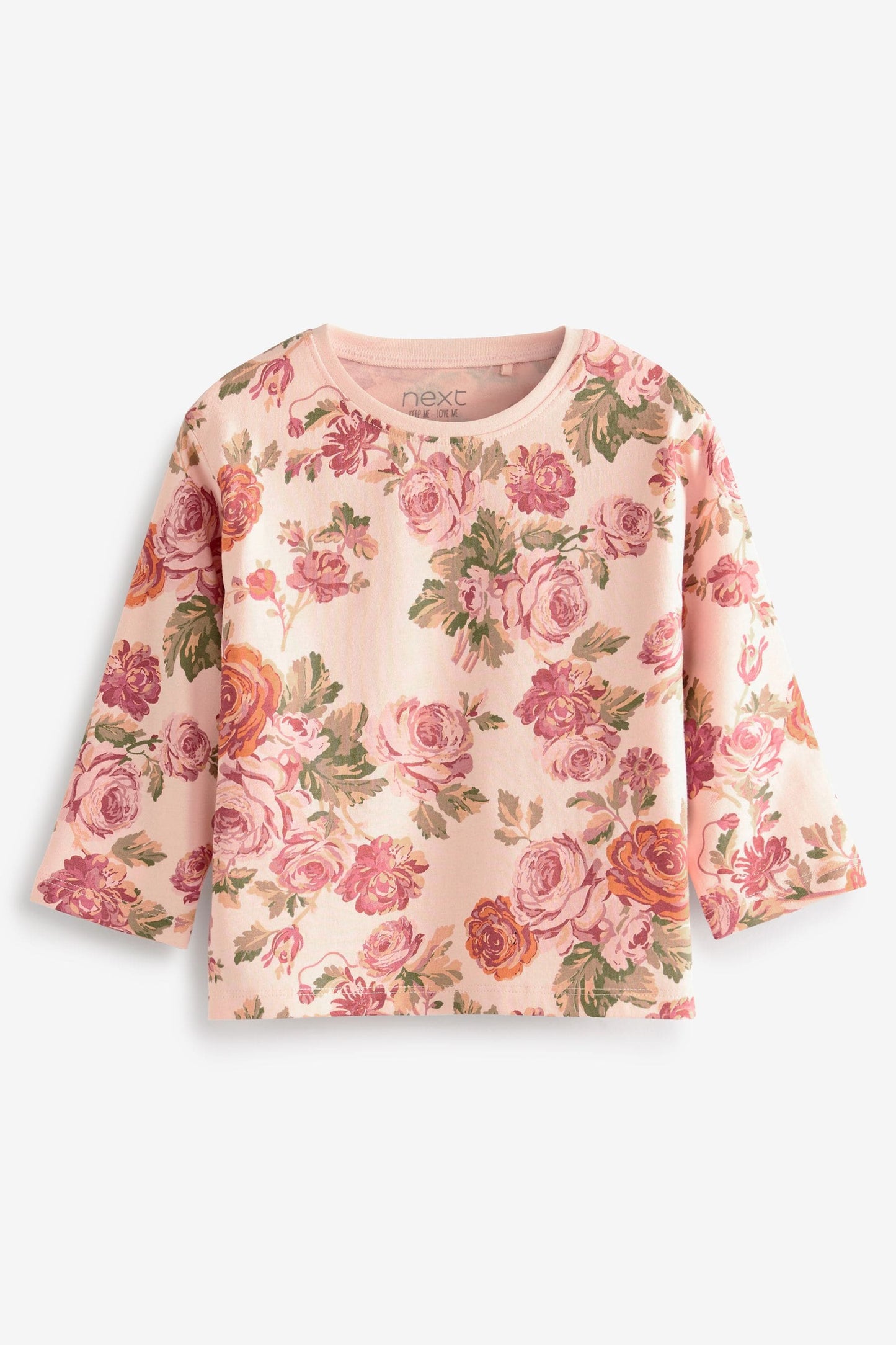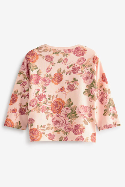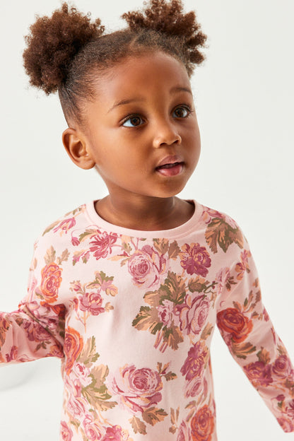 |BabyGirl| Camiseta manga longa Floral - Rosa/Creme (3meses-7anos)