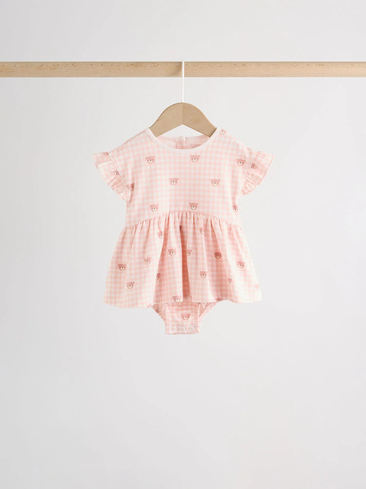|BabyGirl| Conjunto Com 3 Macacões De Bebê Em Malha Com Bordado De Ursinho Rosa