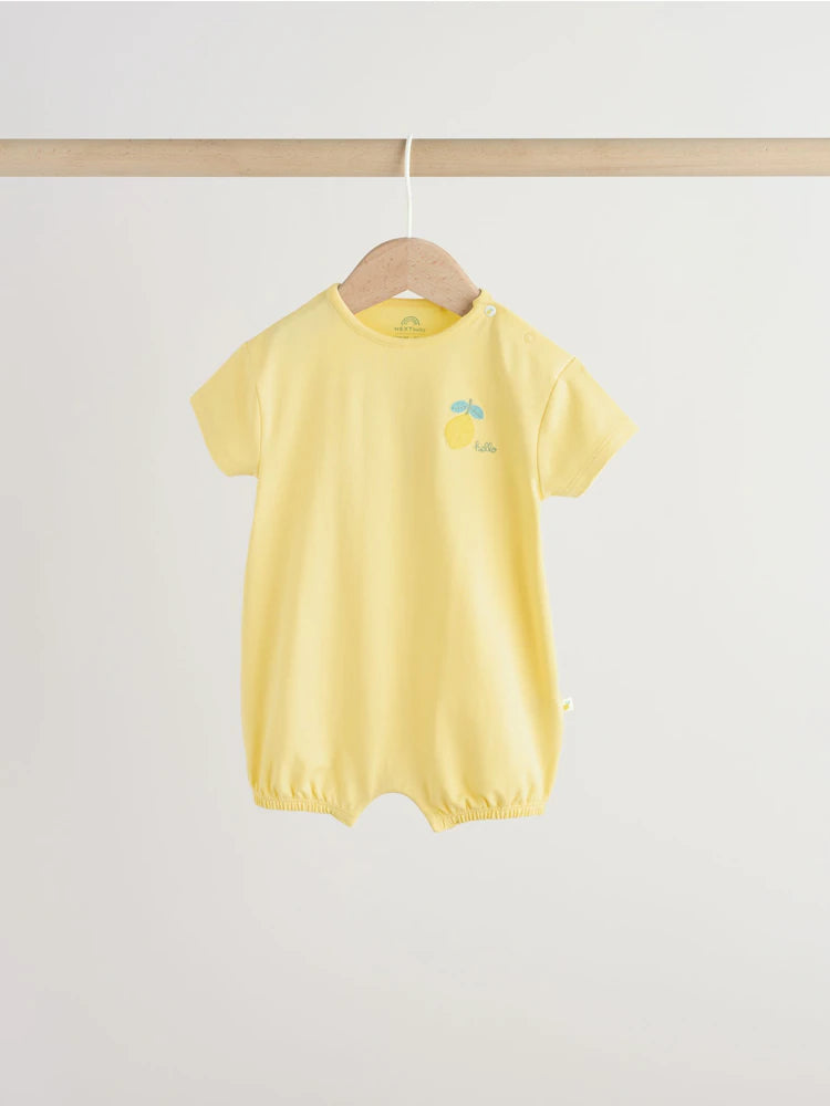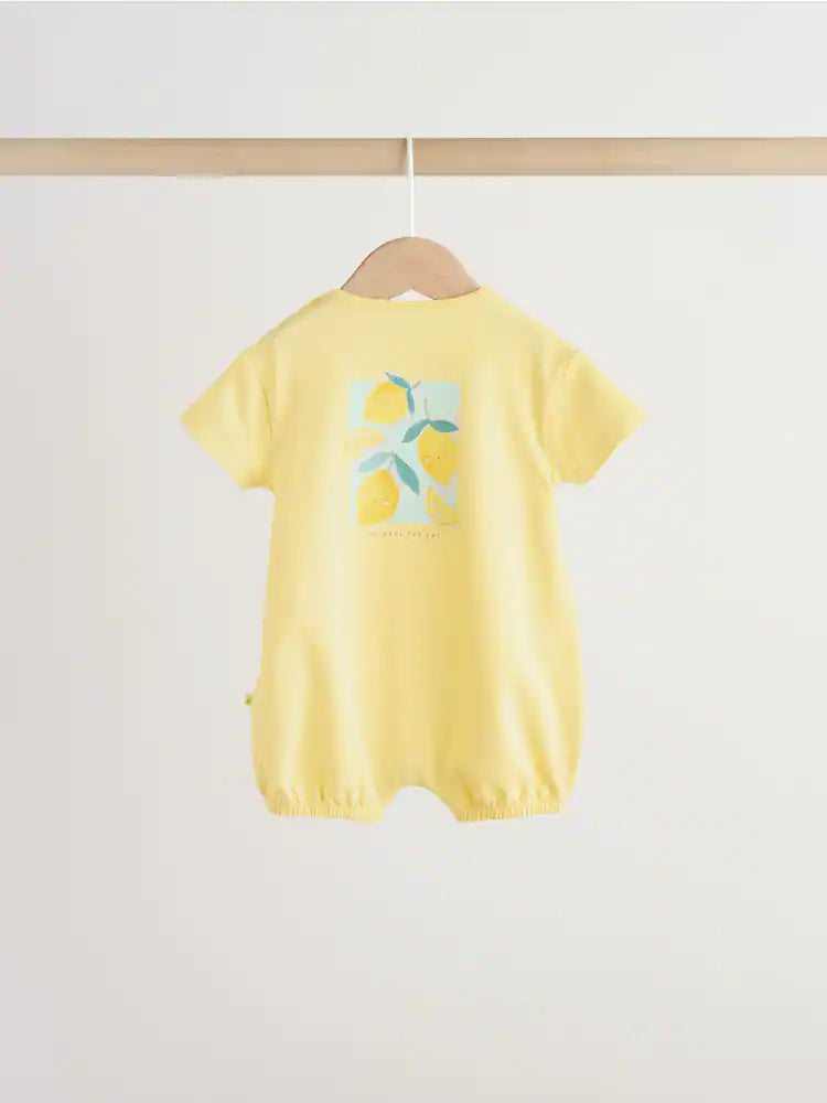 |BabyGirl| Conjunto Com 3 Macacões De Bebê Em Malha Com Estampa De Limão Azul e Amarelo