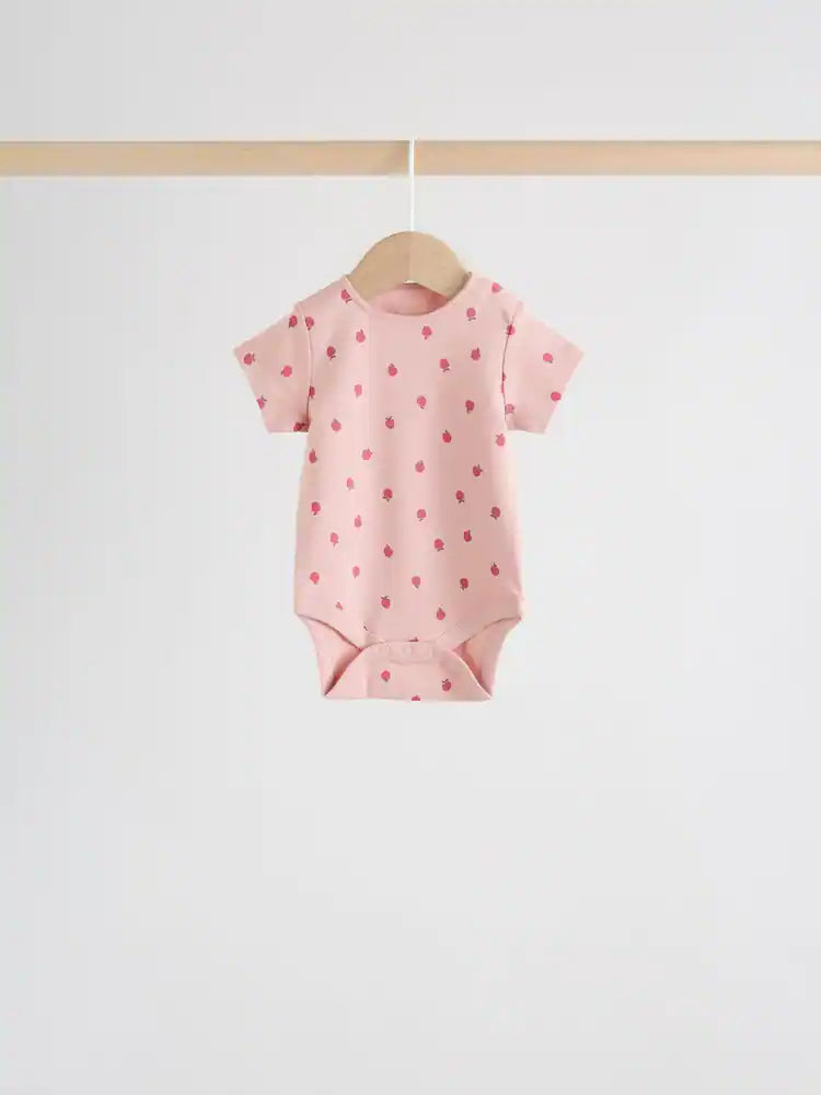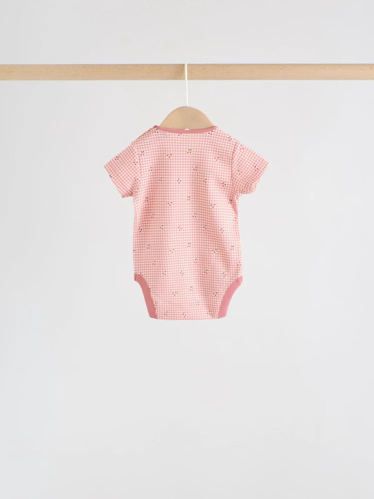 |BabyGirl| Conjunto Com 5 Bodies Rosa De Manga Curta Para Bebês.