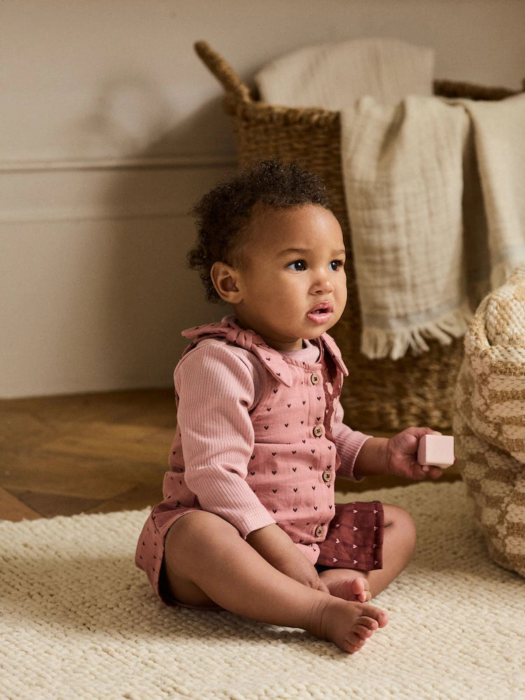 |BabyGirl| Conjunto De 2 Peças De Vestido e Body De Manga Comprida Para Bebê, Rosa/Coração de frutas vermelhas (0 meses a 2 anos)