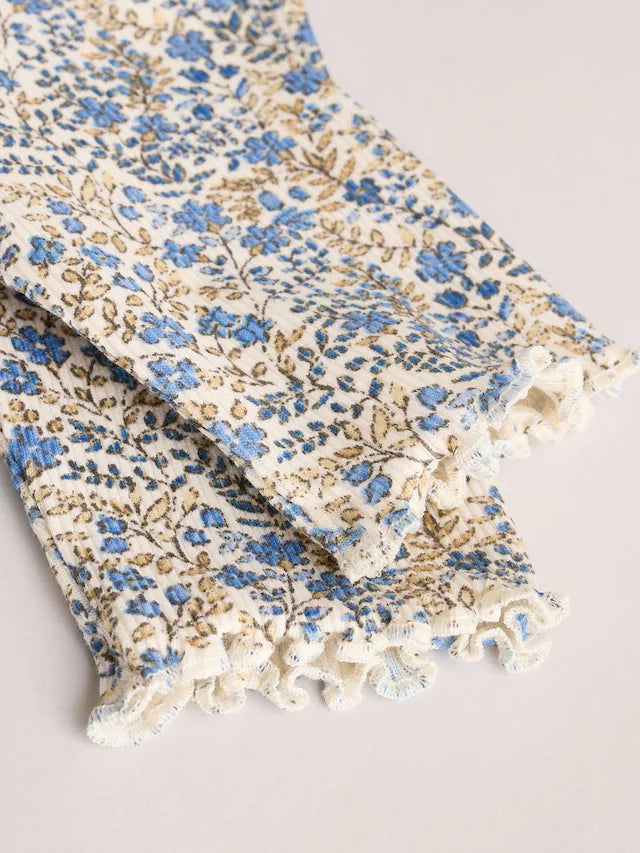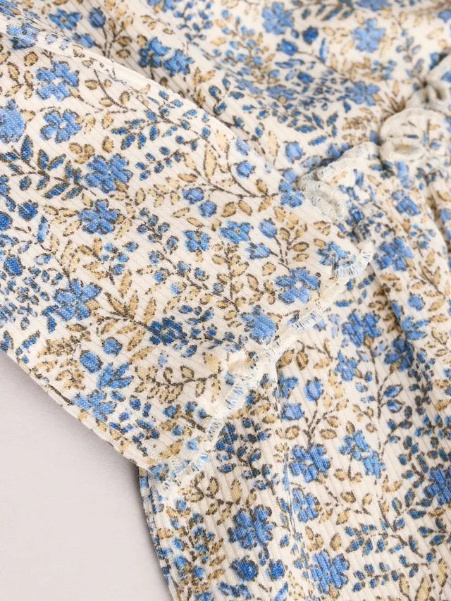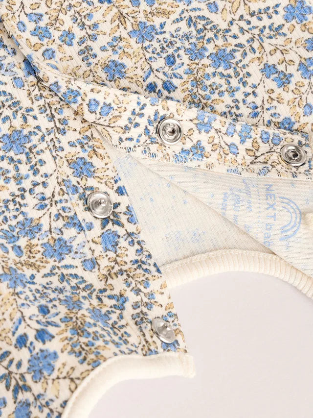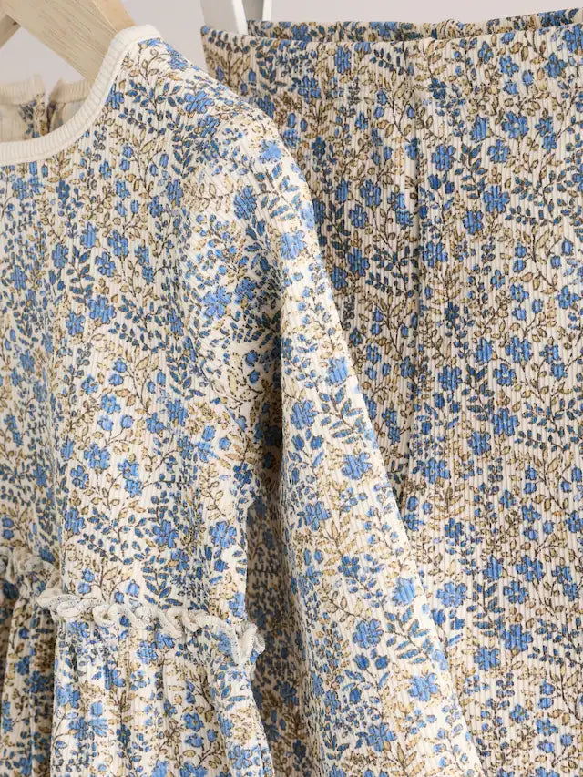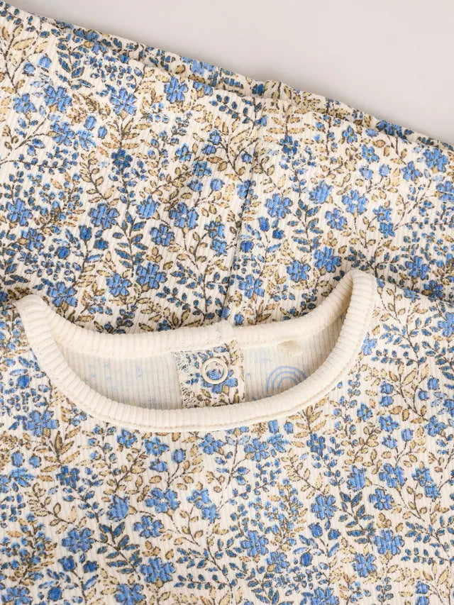 |BabyGirl| Conjunto De Bebê Com Top Peplum De Manga Comprida e Leggings Florais Azuis Ditsy